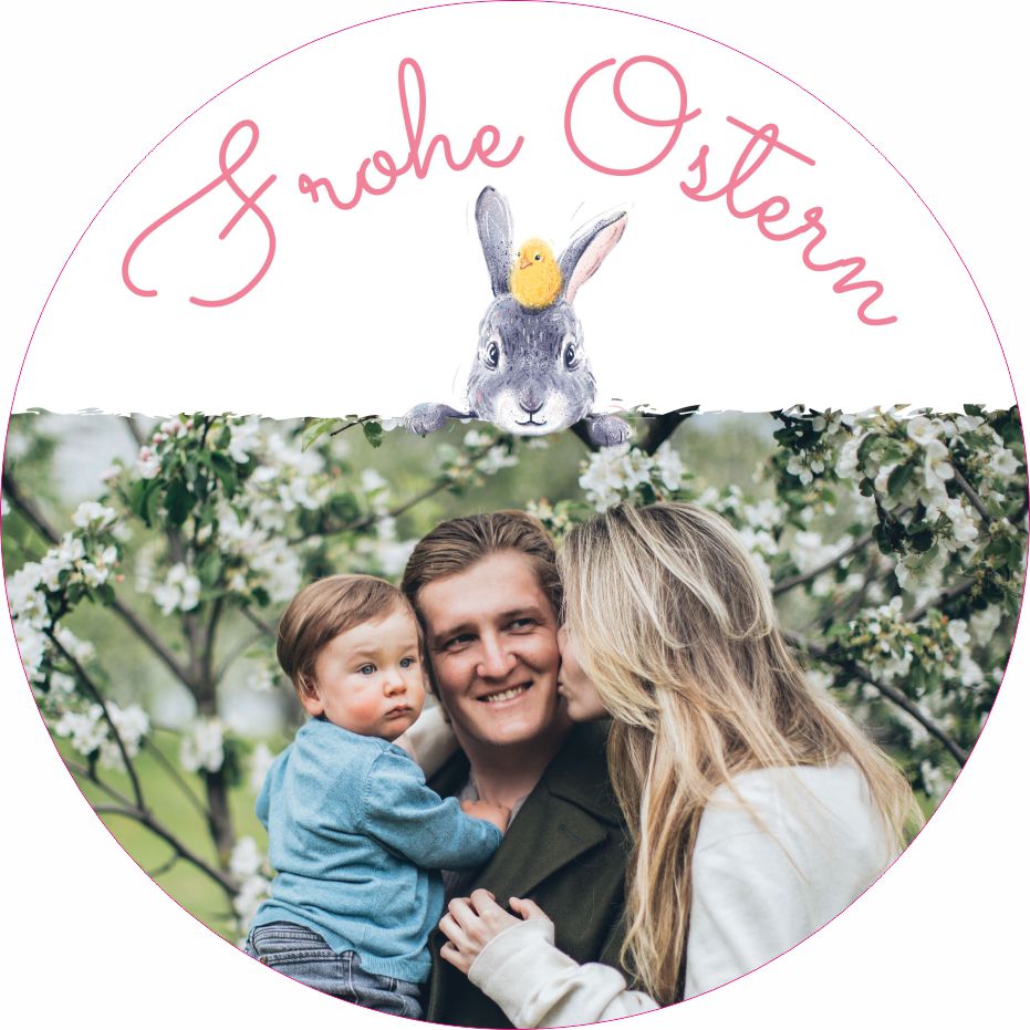 Bei dieser Vorlage können Sie ein Bild in der Vorlage mit Hilfe unseres Konfigurators selbst ändern. Der Text ist mit „Frohe Ostern“voreingestellt.