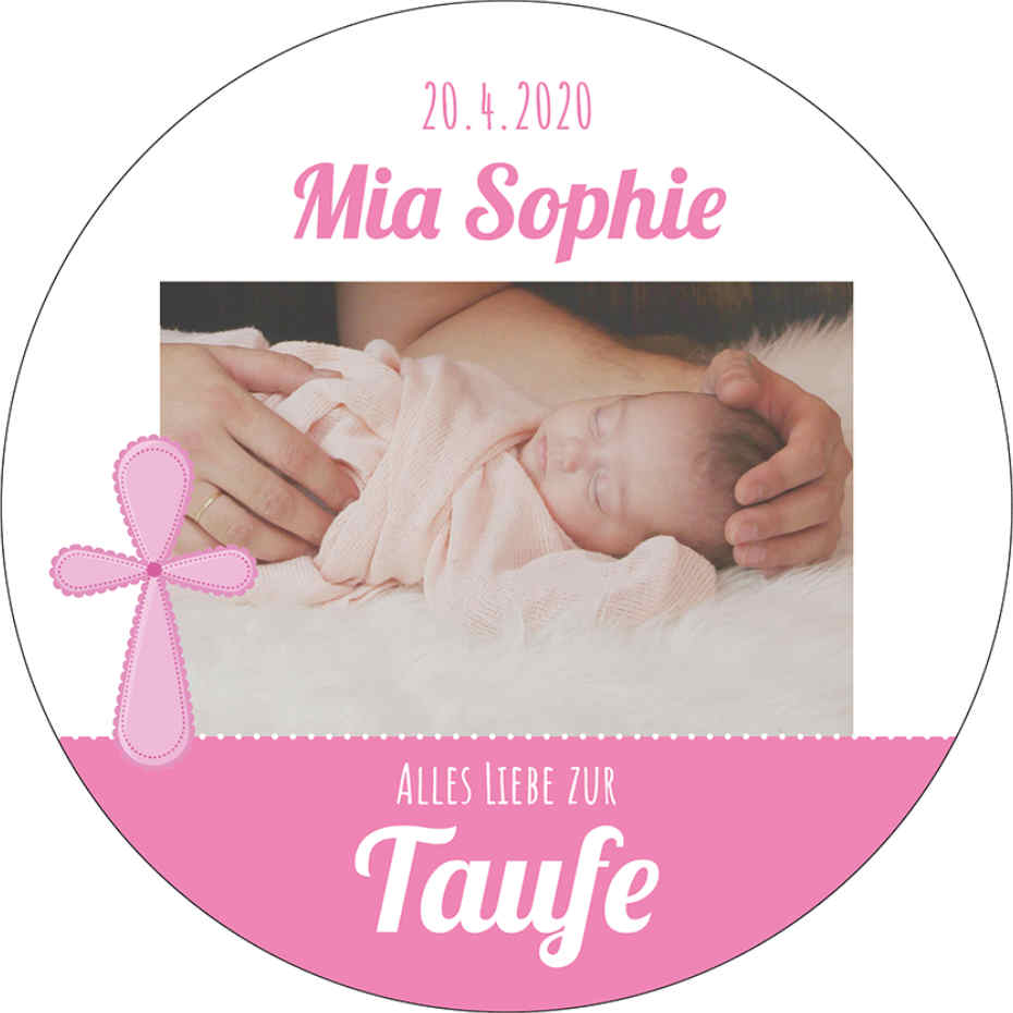 Bei dieser Vorlage können Sie das Bild in der Vorlage mit Hilfe unseres Konfigurators selbst ändern. Der Text ist mit „Alles Liebe zur Taufe“ voreingestellt. Den Namen und das Datum können Sie selbst mit dem Konfigurator ändern.
